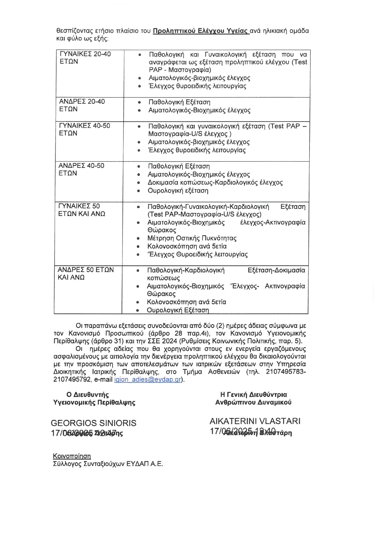 Θα θέλαμε να σας ενημερώσουμε, για την καλύτερη εξυπηρέτηση σας, ότι τη Δευτέρα 17 Νοεμβρίου 2025 όλες οι Υπηρεσίες της Διεύθυνσης Υγειονομικής Περίθαλψης στο κτίριο της οδού Αθηνάς 58 θα λειτουργήσουν έως τις 13:00, συνεπώς δεν θα πραγματοποιηθούν και τα απογευματινά ιατρεία, καθώς λόγω της ιστορικής επετείου θα υπάρξουν διακοπές κυκλοφορίας και αλλαγές δρομολόγιων των Μέσων Μαζικής Μεταφοράς.
